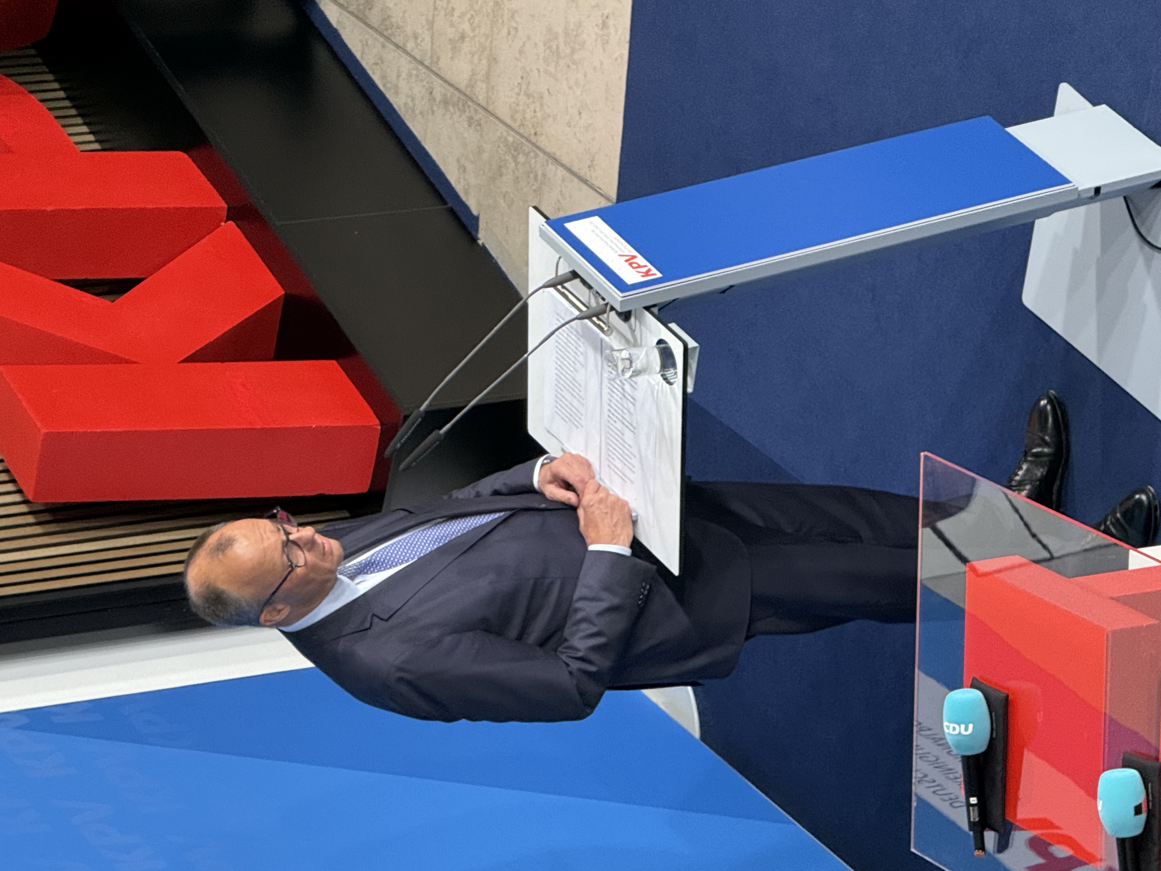 Das leider regenreiche Wochenende begann in der CDU-Parteizentrale mit der Begrüßung durch den KPV-Bundesvorsitzenden Christian Haase, MdB. Es folgte eine Rede des Präsidenten des Deutschen Sparkassen- und Giroverbands sowie ein Forum zur kommunalen Finanzierungslage. Den gelungenen Abschluss des offiziellen Teils bildete die Rede des Bundeskanzlers Friedrich Merz. Er ging auf geplante Projekte ein, die Kommunen entlasten sollen, und gestand zugleich ein, selbst nie ein kommunalpolitisches Wahlamt übernommen zu haben. Der Regierungschef nahm sich außerdem Zeit, einige Fragen der Delegierten zu beantworten. Beim anschließenden Abendempfang bot sich ausreichend Gelegenheit, mit alten und neuen Gesichtern ins Gespräch zu kommen.